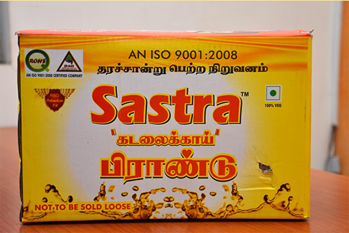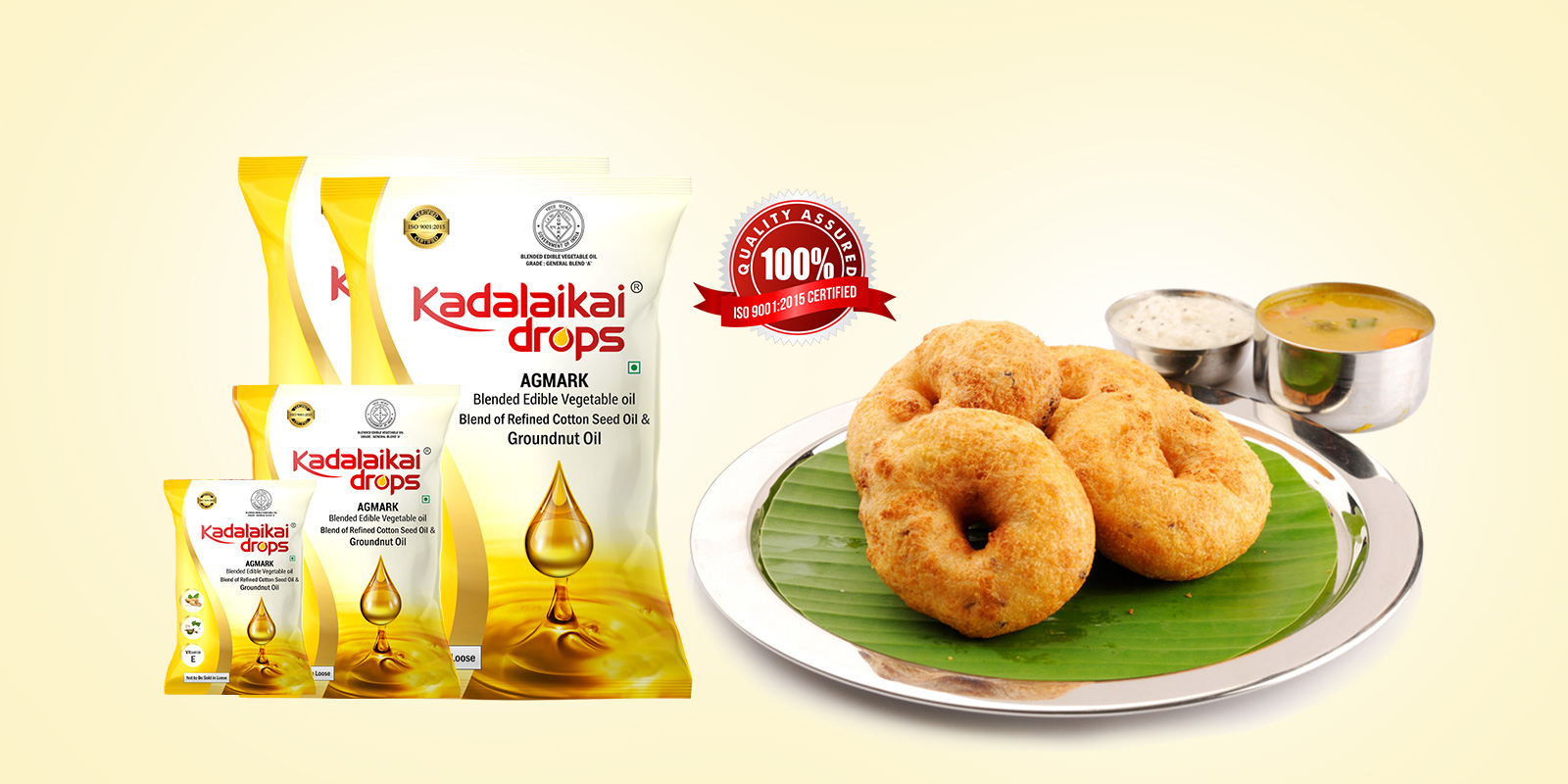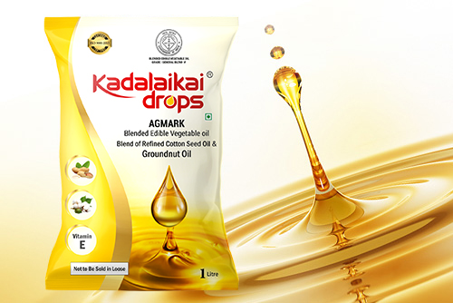 Agmark blended edible vegetable oil. Blend of refined Cotton seed oil and Ground nut oil. Wood-pressed, steam filtered Kadalaikai Drops - a unique, healthy blend of groundnut oil and cotton seed oil-'white gold' (as affectionately called by farmers).